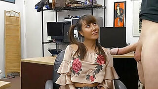 Drilling busty Asian in the backoffice after questioning