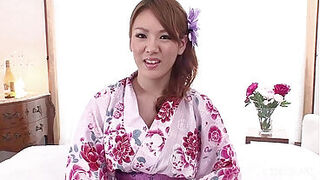 Naughty Japanese babe lets him cum inside her hairy pussy