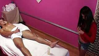 Asian masseuse tugging client